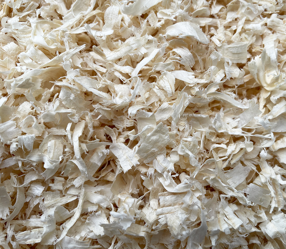 Copeaux de bois blancs larges pétales de haute qualité pour litière animale (100% sapin du nord), garantis sans aucun traitement chimique et totalement exempts de pesticides.