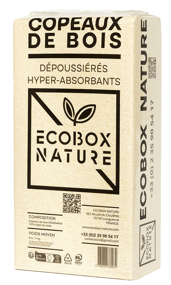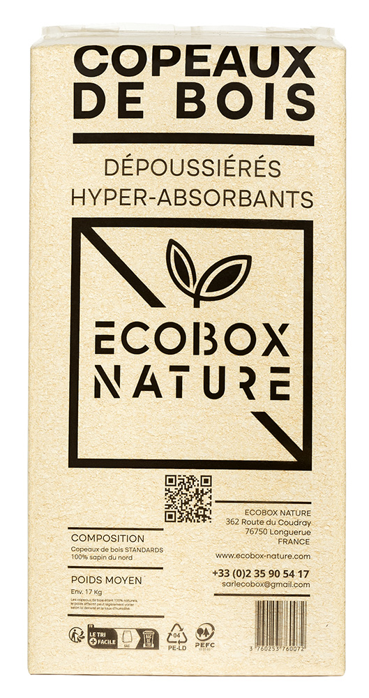 les copeaux de bois étant 100% naturels, le poids effectif peut légèrement varier selon la densité et le taux d’humidité.